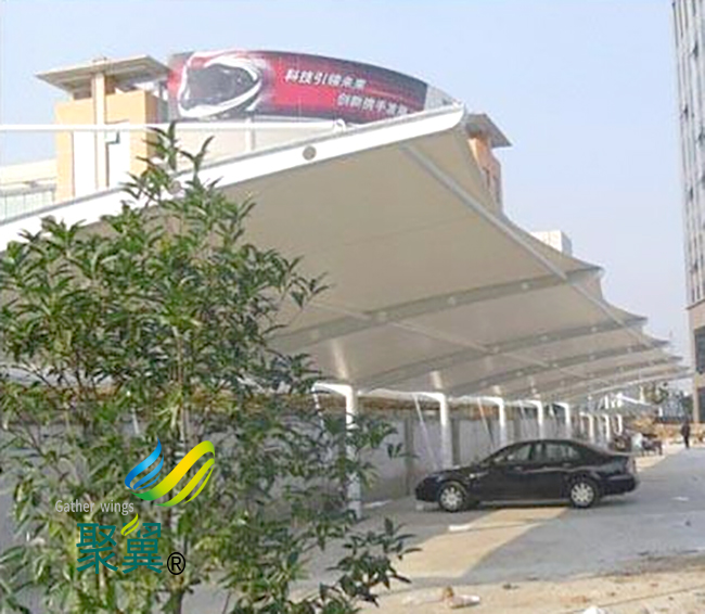 結(jié)構(gòu)車棚大跨度。膜結(jié)構(gòu)自重輕、抗震性能好,可以不需要內(nèi)部支承,膜結(jié)構(gòu)車棚克服了傳統(tǒng)結(jié)構(gòu)在大跨度(無支撐)建筑上實現(xiàn)所遇到的困難,可創(chuàng)造巨大的無遮擋可視空間,有效增加空間使用面積。