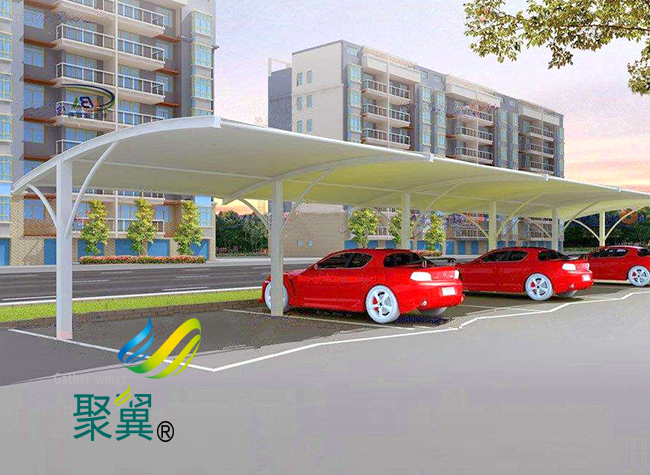 膜結(jié)構(gòu)車棚具有良好的耐火和抗沖擊性能。由于建筑采用了阻燃成分和耐高溫成分的膜材料,這也是膜結(jié)構(gòu)車棚景觀的本質(zhì)防震。