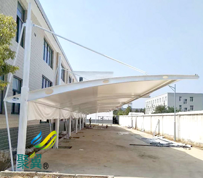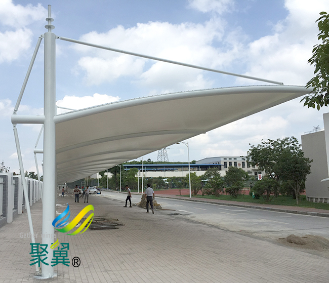 膜結(jié)構(gòu)車棚是一種建筑與結(jié)構(gòu)完善結(jié)合的結(jié)構(gòu)體系。它是用高強(qiáng)度柔性薄膜材料與支持體系相結(jié)合形成具有肯定剛度的穩(wěn)固曲面,膜結(jié)構(gòu)車棚能承受肯定外荷載的空間結(jié)構(gòu)情勢(shì)。
