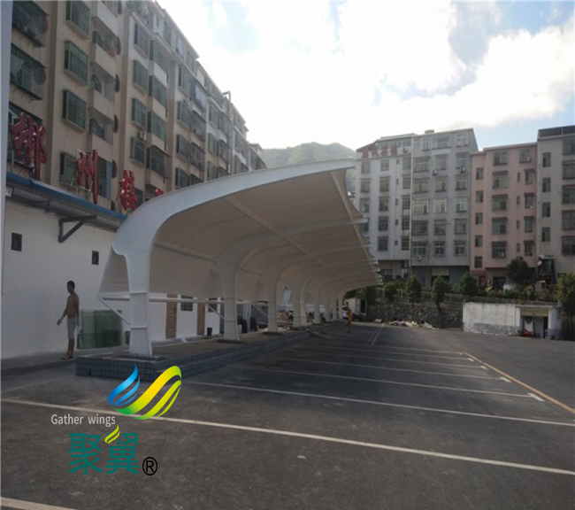 膜結(jié)構(gòu)車(chē)棚給人很強(qiáng)的視覺(jué)沖擊力,而且膜結(jié)構(gòu)車(chē)棚柔性結(jié)構(gòu)給建筑設(shè)計(jì)師提供了更大的想象和創(chuàng)造空間。