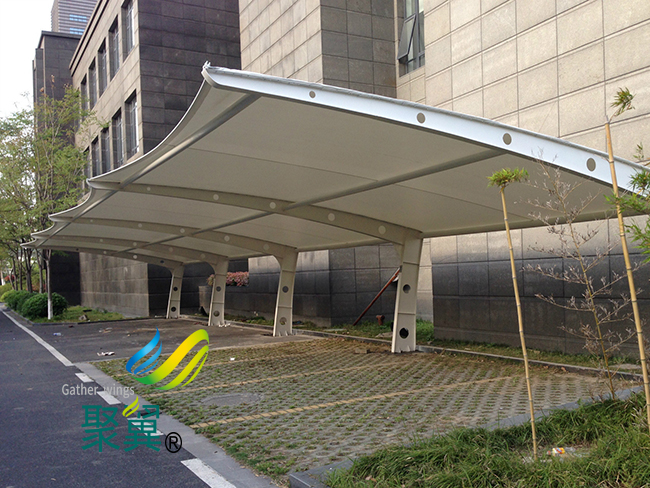 張拉膜膜結(jié)構(gòu)車棚的快速發(fā)展是基于人工合成材料技術(shù)的不斷進(jìn)步,高強(qiáng)度PVC膜材。
