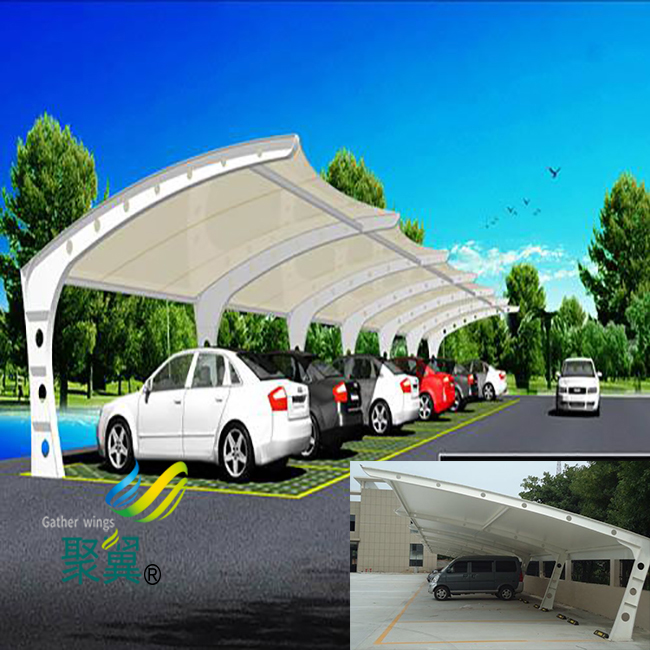 膜結(jié)構(gòu)車棚,因?yàn)樽灾剌p,膜結(jié)構(gòu)車棚膜建筑可以不必要內(nèi)部支持面大跨度覆蓋空間,這使人們可以列天真、更有創(chuàng)意地設(shè)計(jì)和使用建筑空間。