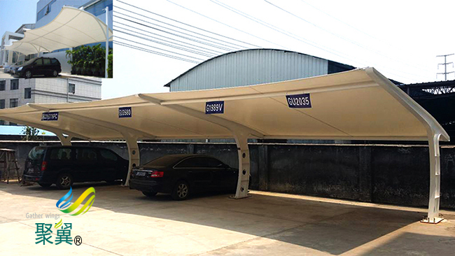 阿拉善盟市膜結(jié)構(gòu)車棚輕便性:重量輕,絕對(duì)保證棚下人和物的安全。