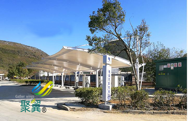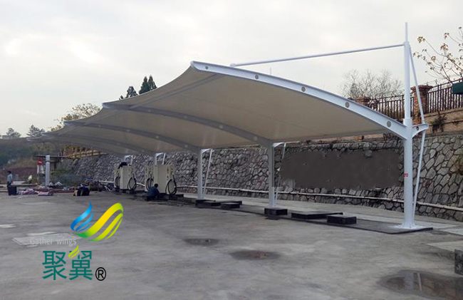 膜結(jié)構(gòu)車棚施工工期比其他建筑更短,施工難度低、工期縮短二分之一以上。膜結(jié)構(gòu)車棚被稱作是一種創(chuàng)造,輕型與可展性的充分分離構(gòu)成了“免施工房子”的概念,這種膜結(jié)構(gòu)車棚構(gòu)造任何需求的時間或地址均可完成。