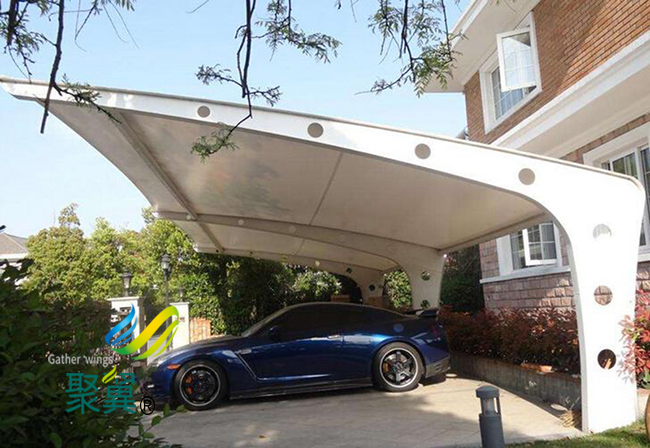 膜結(jié)構(gòu)車棚膜材漫射光的效果,膜材掩蓋的空間內(nèi)將出現(xiàn)特別的光學(xué)效果(有明顯光感但無暗影),膜結(jié)構(gòu)車棚修建規(guī)劃中應(yīng)予以合理使用,選用雙層膜結(jié)構(gòu)時(shí),應(yīng)考慮到透光率的折減。
