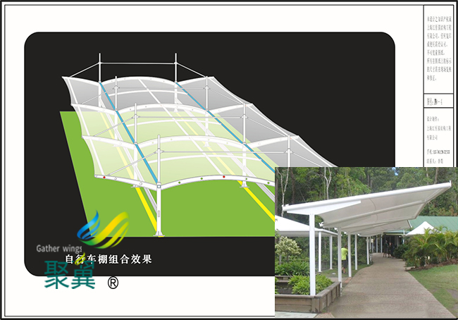 昆明市膜結構車棚遮陽擋雨|膜結構車棚景觀視覺效果