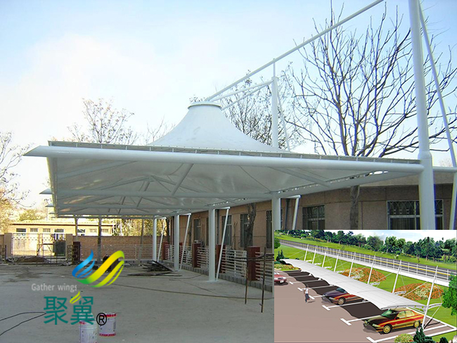 膜結(jié)構(gòu)車棚更大的建筑空間,膜結(jié)構(gòu)車棚的重量輕、可以不需要內(nèi)部支撐面就能夠?qū)崿F(xiàn)大跨度的覆蓋,目前在學(xué)校、政府、住宅等地方有著**廣大的應(yīng)用。
