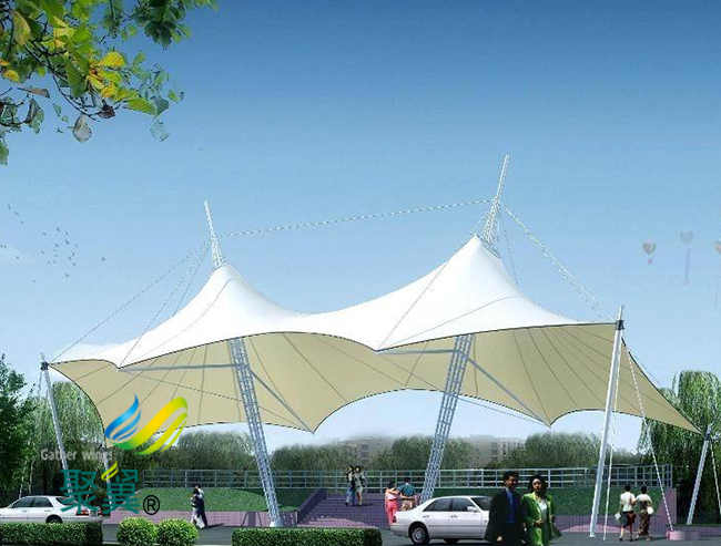 現(xiàn)代景觀膜結(jié)構(gòu)規(guī)劃設(shè)計包括視覺景觀形象 、環(huán)境生態(tài)綠化 、大眾行為心理三方面。景觀膜結(jié)構(gòu)已經(jīng)廣泛應(yīng)用于大型體育場館、入口廊道、購物場 、娛樂場 、停車場 、展覽會場 、植物觀光園等建筑 。在城市景觀中,景觀膜結(jié)構(gòu)特殊的結(jié)構(gòu)及性能特點使其不僅在建筑領(lǐng)域充滿潛力,在其他的應(yīng)用上也擁有巨大的發(fā)展前景 。