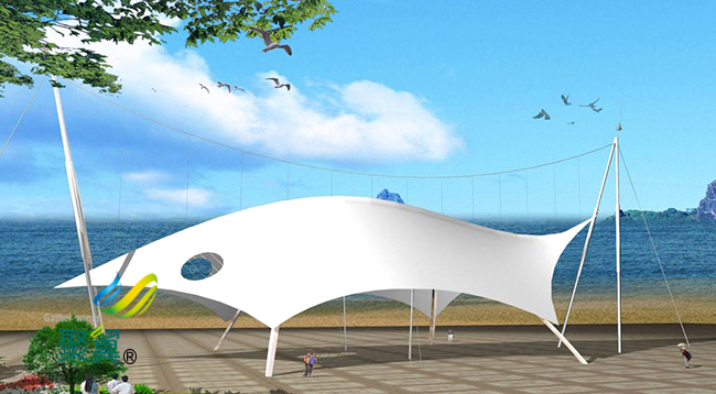 “當(dāng)清晰的結(jié)構(gòu)得到精確的表現(xiàn)時,景觀膜結(jié)構(gòu)就升華為建筑藝術(shù)。”一代建筑大師密斯凡德羅曾這樣說景觀膜結(jié)構(gòu)獨特的結(jié)構(gòu)特點使其各個重要的承力構(gòu)件(諸如鋼索 、桅桿 、張力桿等 )暴露于空氣中。