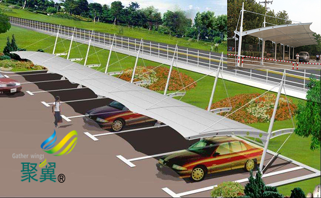 膜結(jié)構(gòu)車棚又叫張拉膜結(jié)構(gòu),是以建筑織物即膜材料為張拉主體,與支撐構(gòu)件或拉索共同組成的結(jié)構(gòu)體系,膜結(jié)構(gòu)車棚以其新穎獨特的建筑造型,良好的受力特點,成為大跨度空 間結(jié)構(gòu)的主要形式之一,膜結(jié)構(gòu)車棚是一種建筑與結(jié)構(gòu)完美結(jié)合的結(jié)構(gòu)體系。