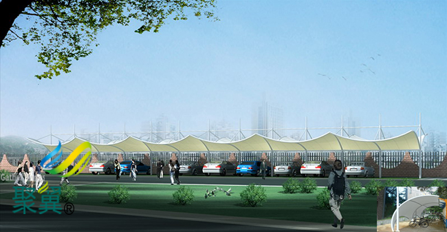 膜結(jié)構(gòu)車棚積雪問(wèn)題,而且空間更加寬敞,但是其也有較為明顯的缺點(diǎn),就是使用膜材較多,鋼構(gòu)較為復(fù)雜,成本會(huì)比其他造型的車棚更高,一般用于對(duì)于造型有嚴(yán)格要求的場(chǎng)所,如商業(yè)街、景區(qū)、公司總部等等。