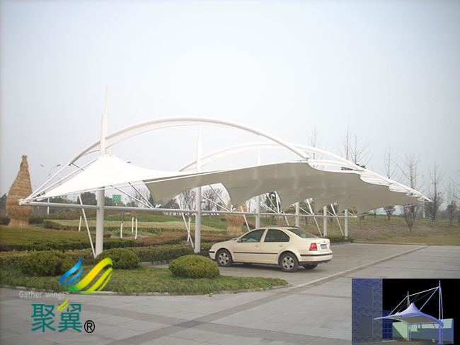 膜結(jié)構(gòu)車棚是近年來在國內(nèi)開始流行的一種新式的車棚結(jié)構(gòu)。它與以往的舊式車棚相比,結(jié)構(gòu)更加輕盈,而且在使用中比較穩(wěn)固。它的材料使用了高分子膜結(jié)構(gòu)材料和支撐構(gòu)件共同組成,并且能根據(jù)支撐構(gòu)件的高低位置不同而呈現(xiàn)不同的形狀。吉林省白山市靖宇縣