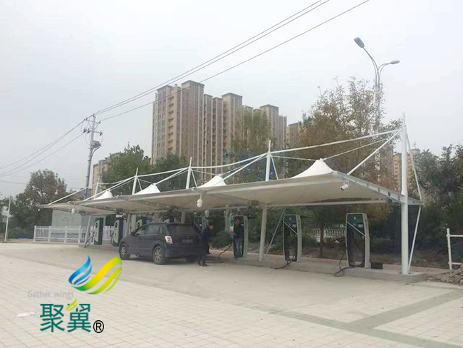 蕪湖市膜結構車棚材料一般是阻燃材料,不易引起火災。此外,有些膜結構還涂有保護膜,可以保持其清潔,延長建筑物的使用壽命。蕪湖市膜結構車棚”聚四氟乙烯膜材料的表面不易粘附污垢和灰塵,其表面的灰塵會被雨水自然沖刷,因此經過多年使用,蕪湖市膜結構車棚仍然保持外觀清潔和棚內美觀。”