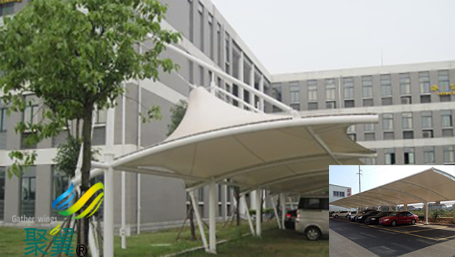 膜結(jié)構(gòu)車棚積雪問題,而且空間更加寬敞,但是其也有較為明顯的缺點,就是使用膜材較多,鋼構(gòu)較為復(fù)雜,成本會比其他造型的車棚更高,一般用于對于造型有嚴(yán)格要求的場所,如商業(yè)街、景區(qū)、公司總部等等。