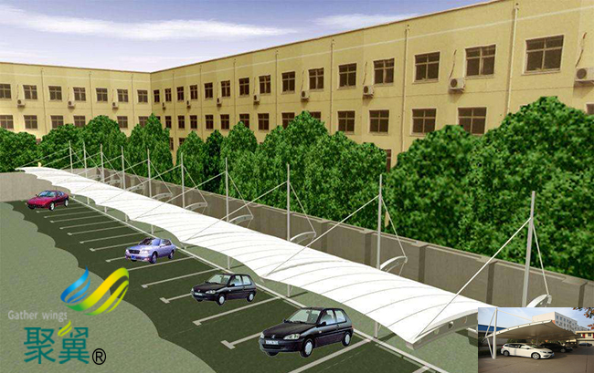 膜結(jié)構(gòu)車棚來和這些金屬車棚做一下對比,來說一下膜結(jié)構(gòu)車棚受歡迎的理由是什么?首先,福建省福州市平潭縣膜結(jié)構(gòu)車棚是一種公用建筑物,是由建設(shè)單位出資進行修建,所以這種產(chǎn)品的首要要求就是耐用穩(wěn)固,金屬車棚都是金屬支撐柱,然后其上進行焊接等工藝加裝頂棚。如果是采用的聚碳酸酯材料作為頂棚的話,采用螺栓固定。相對于膜結(jié)構(gòu)來說,整體能承受的載荷會小很多,遇到劇烈的暴風(fēng)雨天氣,頂棚會和支撐件分離。而膜結(jié)構(gòu)受力點小,單位尺寸上能承受的壓強高,因此在多次的實踐中,福建省福州市平潭縣膜結(jié)構(gòu)車棚都穩(wěn)固如山。 車棚的透光性:金屬車棚的頂棚一般都是采用聚碳酸酯材料或者是彩鋼板,二者的透光性和膜結(jié)構(gòu)相比,膜結(jié)構(gòu)材料的透光性更好,而且膜結(jié)構(gòu)作為一種高分子布的話,不會因為長時間的直曬變黃,也不會物理特性發(fā)生變化,比如變脆,軟化等現(xiàn)象。 車棚的重量輕,福建省福州市平潭縣膜結(jié)構(gòu)車棚布是一種建筑織物,能承受高強度的沖擊和拉伸,而且可以任意變形。因此膜結(jié)構(gòu)在行業(yè)內(nèi)有“不破玻璃”的稱號。同時成本只有其它結(jié)構(gòu)車棚的一半或者更少。藝術(shù)性:福建省福州市平潭縣膜結(jié)構(gòu)車棚最值得一提的是它可以根據(jù)支撐構(gòu)件的位置和高低排列組成不同的形狀,這在金屬車棚上是無法想象的。如在車棚頂部通過拉伸索,使膜結(jié)構(gòu)布邊沿向上翻起。這要是在彩鋼上只能通過對彩鋼板進行預(yù)熱加工才行,需要耗費極大的代價。而在膜結(jié)構(gòu)材料上,通過支撐和張拉索就能構(gòu)成。所以福建省福州市平潭縣膜結(jié)構(gòu)車棚可以通過自身柔美的曲線和周圍的藝術(shù)景觀結(jié)合起來,給人以美的享受。