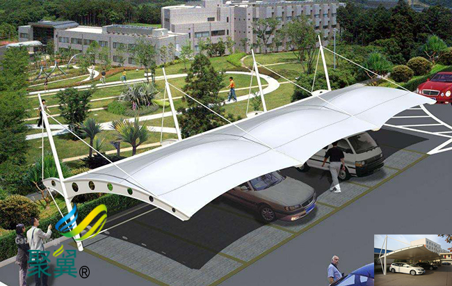膜結構車棚它的材料使用了高分子膜結構材料和支撐構件共同組成,并且能根據支撐構件的高低位置不同而呈現不同的形狀。因此在教育,商業(yè),體育館等公共場所都有很廣泛的應用。