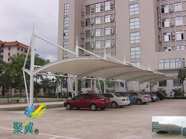 因此膜結(jié)構(gòu)在行業(yè)內(nèi)有“不破玻璃”的稱(chēng)號(hào)。同時(shí)成本只有其它結(jié)構(gòu)車(chē)棚的一半或者更少。藝術(shù)性:寧夏省固原地區(qū)彭陽(yáng)縣膜結(jié)構(gòu)車(chē)棚最值得一提的是它可以根據(jù)支撐構(gòu)件的位置和高低排列組成不同的形狀,這在金屬車(chē)棚上是無(wú)法想象的。如在車(chē)棚頂部通過(guò)拉伸索,使膜結(jié)構(gòu)布邊沿向上翻起。這要是在彩鋼上只能通過(guò)對(duì)彩鋼板進(jìn)行預(yù)熱加工才行,需要耗費(fèi)極大的代價(jià)。