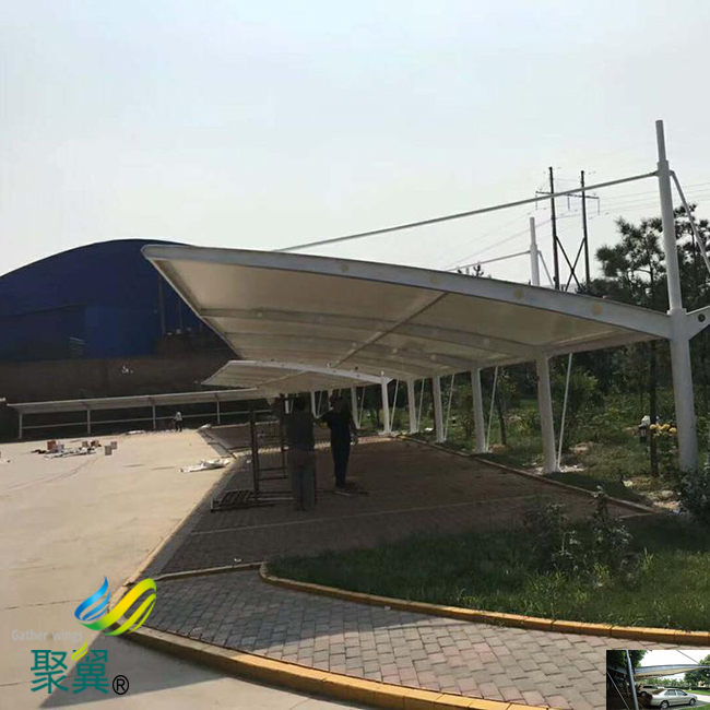 已經(jīng)越來(lái)越受到人們的認(rèn)可,膜結(jié)構(gòu)由于所用的材質(zhì)輕、韌性好,所以可以讓車棚的設(shè)計(jì)跳脫出傳統(tǒng)彩鋼瓦、陽(yáng)光板車棚的單調(diào)造型,給設(shè)計(jì)師更大的施展創(chuàng)意的空間,使得車棚不僅安全實(shí)用還能具有一點(diǎn)點(diǎn)藝術(shù)氣息。