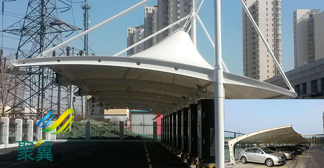 膜結(jié)構(gòu)車棚卻能擺脫這一限制,因其材料的特殊性,可用于各種大跨度的車棚建造;
