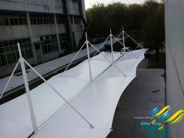 項(xiàng)目類(lèi)型:自行車(chē)停車(chē)棚 項(xiàng)目材料:PVDF專(zhuān)業(yè)自行車(chē)棚遮陽(yáng)面料 產(chǎn)品系列:大氣上檔次 工程地點(diǎn):杭州市余杭區(qū) 項(xiàng)目預(yù)算:大氣上檔次 杭州市余杭區(qū)星橋街道自行車(chē)雨棚采用PVDF專(zhuān)業(yè)自行車(chē)棚遮陽(yáng)面料,經(jīng)久耐用,美觀大方,下圖為我司工作人員安裝現(xiàn)場(chǎng):自行車(chē)棚的遮陽(yáng)可采用PVDF、PVC等的面料來(lái)安裝,其使用優(yōu)勢(shì)見(jiàn)以下詳解:膜布面料獨(dú)特在:(有自潔功能)易清洗、讓面料持久如新、抗老化,防凍,防雨,耐高溫,抗壓等。