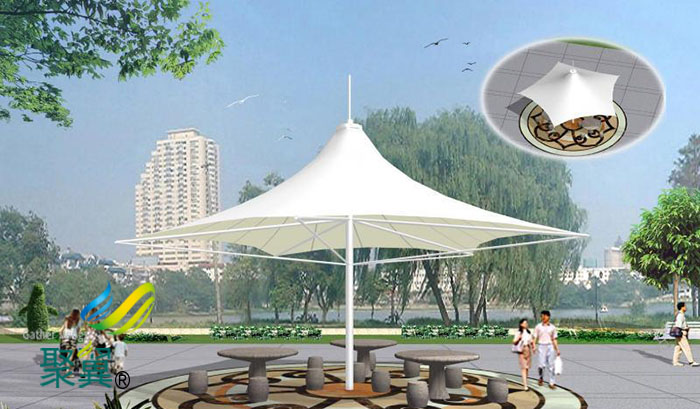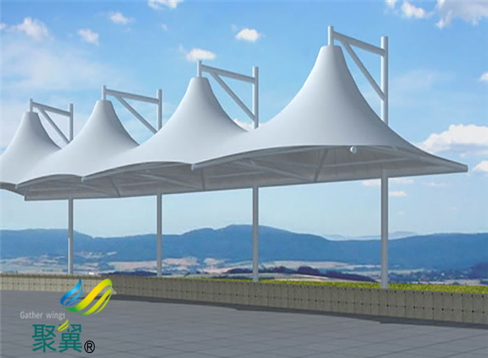 膜結(jié)構(gòu)使用壽命及特點:膜結(jié)構(gòu)景觀棚的篷布材質(zhì)是膜結(jié)構(gòu),而膜材的最大特點是強度高、耐久性好、防火難燃、自潔性好,不受紫外線影響,使用壽命長,一般15-30年。