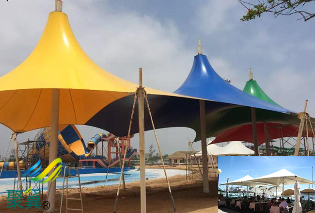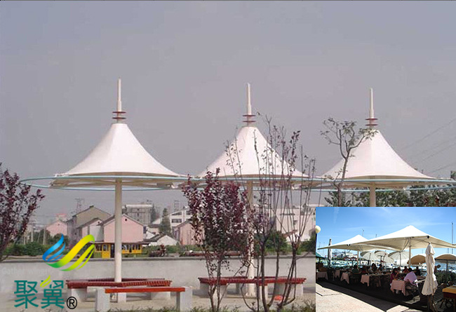膜結(jié)構(gòu)使用壽命及特點(diǎn):膜結(jié)構(gòu)景觀棚的篷布材質(zhì)是膜結(jié)構(gòu),而膜材的最大特點(diǎn)是強(qiáng)度高、耐久性好、防火難燃、自潔性好,不受紫外線影響,使用壽命長(zhǎng),一般15-30年。