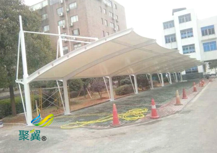 單位或公共場所安裝膜結(jié)構(gòu)車棚供愛車停放車輛,車棚比較輕巧、造型別致、因此現(xiàn)在很多停車場和候車廳等地方都選擇使用膜結(jié)構(gòu)來做車棚。