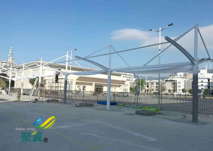 膜結(jié)構(gòu)車棚的施工圖片安裝視頻哪里找聚翼