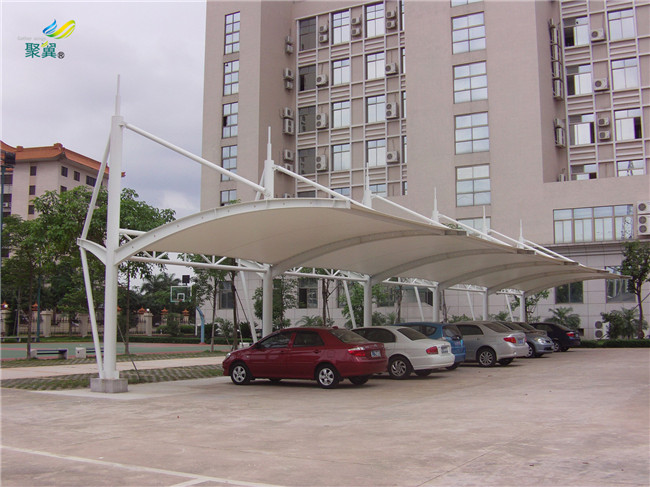 膜結(jié)構停車棚的質(zhì)量:普通膜結(jié)構停車棚具有強度高、耐久性好、耐火性好、自潔性好,不受紫外線影響等優(yōu)勢,且與涂料使用的材料相同,增加使用壽命。
