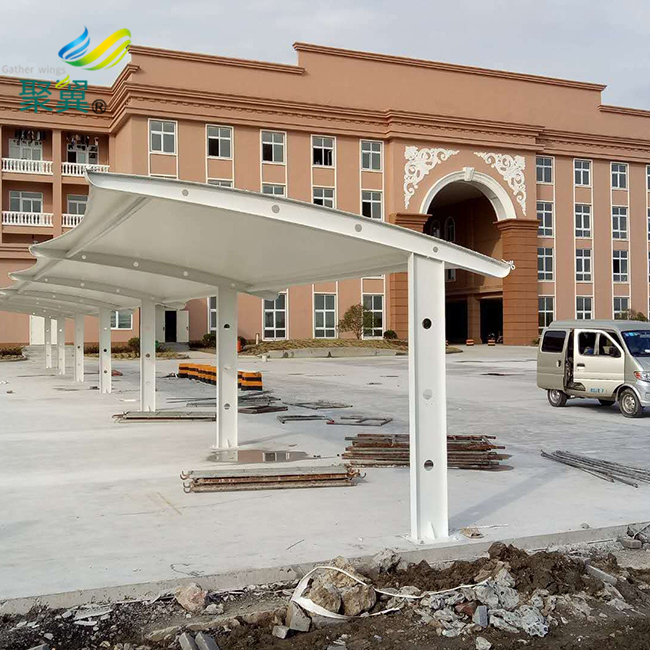 膜結(jié)構(gòu)停車棚工程身上,對(duì)于這種形式的結(jié)構(gòu)建筑而言,其不單單突破了單一直線形式,除此之外更好的將鋼結(jié)構(gòu)與膜結(jié)構(gòu)很好的結(jié)合在一起,那么對(duì)于這種形式的建筑而言,其在鋼結(jié)構(gòu)部分的處理事宜是怎樣的呢?