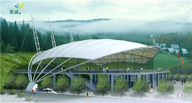 建筑設(shè)計節(jié)點(diǎn)設(shè)計與膜建筑總體設(shè)計協(xié)調(diào),選擇相適應(yīng)的材料與工藝,同時滿足不同建筑環(huán)境的防腐、防水要求。至于節(jié)點(diǎn)美觀是無論如何重視都不過分,任何節(jié)點(diǎn)設(shè)計都應(yīng)放到特定局 部與整體環(huán)境。