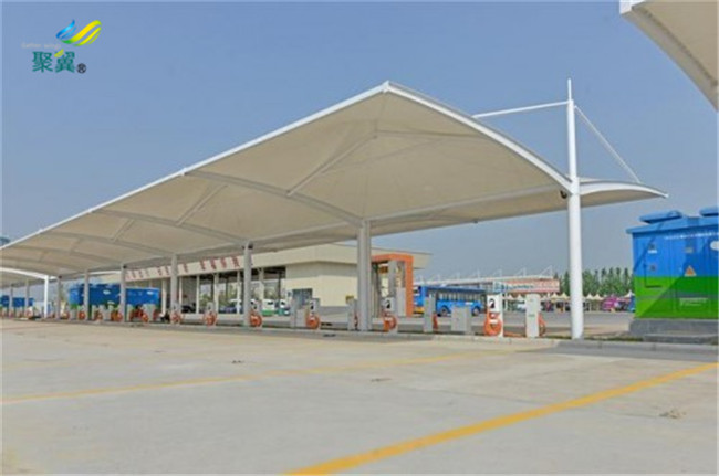 第一、透光性佳,隨著膜結(jié)構(gòu)常用膜材強(qiáng)度越來越高,使用高強(qiáng)度的膜材可以有效的抵擋大量的紫外線,有效的保護(hù)車輛,它的透光效果達(dá)20%,在膜結(jié)構(gòu)頂棚的遮蔽下,充電樁仍然亮度十足,透過膜結(jié)構(gòu)的陽光變得柔和,大大減少了車輛的因陽光長時間照射產(chǎn)生的老化。