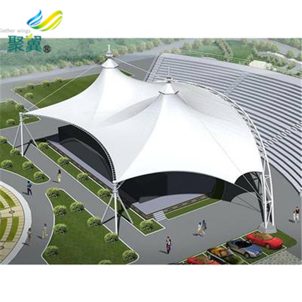 膜結構是一種建筑與結構完美結合的結構體系;它是用高強度柔性薄膜材料與支撐體系相結合形成具有一定剛度的穩(wěn)定曲面,能承受一定外荷載的空間結構形式;這種結構形式特別適用于大型體育場館、人口廊道、小品、公眾休閑娛樂廣場、展覽會場、購物中心等領域。用于膜結構中的膜材是一種具有高強度、柔韌性好的薄膜材料;中心的織物基材分為聚酯纖維及玻璃纖維,而作為涂層材使用的樹脂有聚氯乙烯樹脂(PVC),硅酮及聚四氟乙烯樹脂(PTFE),它具有輕質、柔韌、厚度小、重量輕、透光性好;對自然光有反射、吸收和透射能力;它不燃、難燃或阻燃;具有耐久、防火、氣密良好等特性;