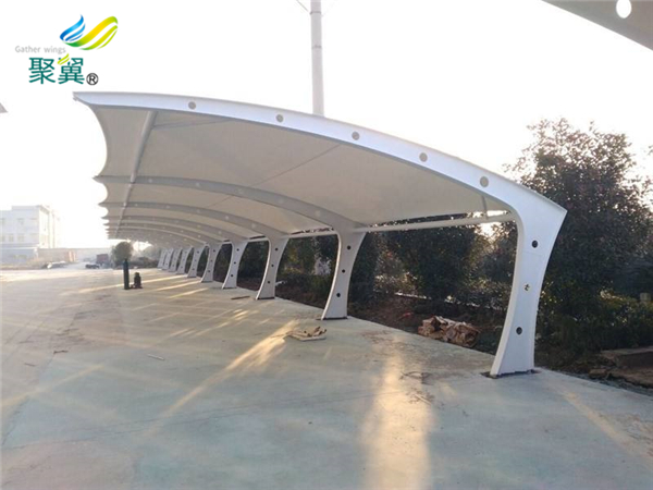 同傳統(tǒng)的雨篷相比,膜結(jié)構(gòu)車(chē)棚優(yōu)勢(shì)非常明顯,實(shí)用,耐用,擋風(fēng)避雨。除此之外,膜結(jié)構(gòu)車(chē)棚還可以當(dāng)成一件藝術(shù)品給人以視覺(jué)上的享受。膜結(jié)構(gòu)外形具有曲線美,剛?cè)岵?jì),造型潔白無(wú)瑕,讓人看了之后留下深刻印象。
