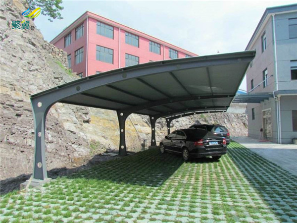 膜結(jié)構(gòu)壽命時(shí)間長(zhǎng),膜結(jié)構(gòu)雨棚一般可達(dá)10-20年左右。彩鋼瓦圖層太薄,一般使用壽命3-6年。