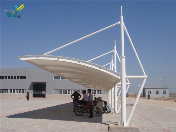 膜結(jié)構(gòu)汽車停車棚景觀棚采用高強(qiáng)度材料,一般要求高技術(shù)才能完成,除了結(jié)構(gòu)強(qiáng)度外,其整體重量相對(duì)較輕,在極端惡劣的天氣下也不必?fù)?dān)心被車輛破壞和損壞