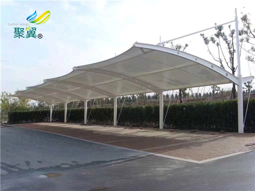 膜結(jié)構(gòu)車棚是近年來(lái)在國(guó)內(nèi)開(kāi)端盛行的一種新式的車棚結(jié)構(gòu)。它與以往的老式車棚比較,結(jié)構(gòu)愈加輕盈,并且在運(yùn)用中比較安定。它的資料運(yùn)用了高分子膜結(jié)構(gòu)資料和支撐構(gòu)件一起組成,并且能依據(jù)支撐構(gòu)件的凹凸方位不同而出現(xiàn)不同的形狀。因此在教育,商業(yè),體育館等公共場(chǎng)所都有很廣泛的使用 車棚在開(kāi)始是作為一種能提供給車輛??康漠?dāng)?shù)?,使車輛避免了直接面臨風(fēng)吹雨打。用來(lái)確保自行車,汽車等在車棚下不受損害。