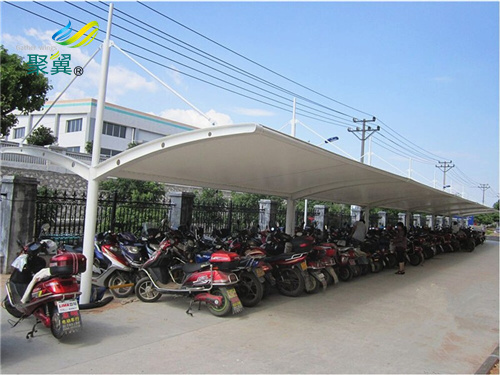 膜結(jié)構(gòu)車棚是近年來(lái)在國(guó)內(nèi)開(kāi)端盛行的一種新式的車棚結(jié)構(gòu)。它與以往的老式車棚比較,結(jié)構(gòu)愈加輕盈,并且在運(yùn)用中比較安定。它的資料運(yùn)用了高分子膜結(jié)構(gòu)資料和支撐構(gòu)件一起組成,并且能依據(jù)支撐構(gòu)件的凹凸方位不同而出現(xiàn)不同的形狀。因此在教育,商業(yè),體育館等公共場(chǎng)所都有很廣泛的使用 車棚在開(kāi)始是作為一種能提供給車輛??康漠?dāng)?shù)兀管囕v避免了直接面臨風(fēng)吹雨打。用來(lái)確保自行車,汽車等在車棚下不受損害。