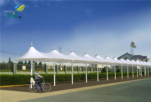 張拉膜工程所采用膜材料表面在經過采用防護涂層處理過后,具備不吸水、不受潮、抗磨損,抗灰塵等特點。它以造型學、色彩學為基礎,以自然以及明族風情為依托,創(chuàng)造出優(yōu)美的曲線獨特的造型與肩帶建筑技術融為一體,成為城市的一道亮麗風景線。被運維現(xiàn)代最具有代表性和前途性的建筑形式