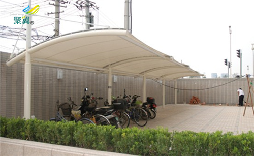 膜結(jié)構(gòu)遮陽棚膜材有較高的反射性及較低的光吸收低,并且熱傳導(dǎo)性較低,這程度上阻止太陽能進(jìn)入室內(nèi)。另外,膜材的半透明性保證了適當(dāng)?shù)淖匀宦⑸涔庹彰魇覂?nèi)。