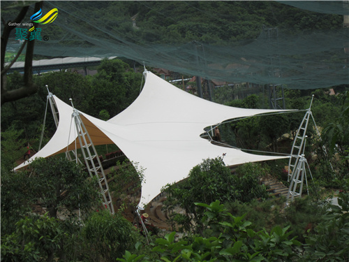 3、使用張拉膜的建筑從成本上面來(lái)說(shuō)也是非常地實(shí)在的,因?yàn)閺埨ひ淮纬尚?,而且施工?jiǎn)單,所以總體的費(fèi)用上面比起傳統(tǒng)的建筑要節(jié)約很多,目前在很多的停車(chē)棚或是公共場(chǎng)合當(dāng)中都已經(jīng)使用了張拉膜做為原料。