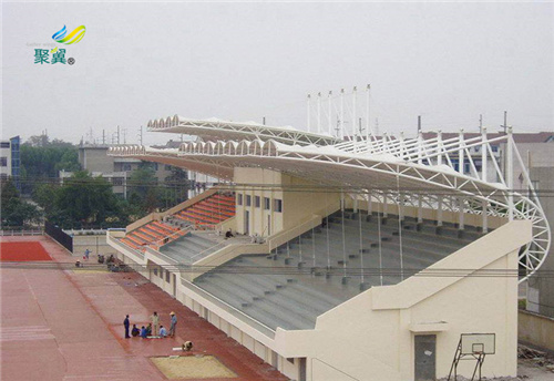 膜結(jié)構(gòu)看臺也叫膜結(jié)構(gòu)看臺遮陽棚、罩棚、雨棚,主要是在看臺上方加上一個膜結(jié)構(gòu)制作的遮蔽結(jié)構(gòu),可以起到遮陽避雨的功能,自重輕,具有良好的受力特點——成為大跨度空間結(jié)構(gòu)的主要形式之一,它的應(yīng)用也很廣泛。