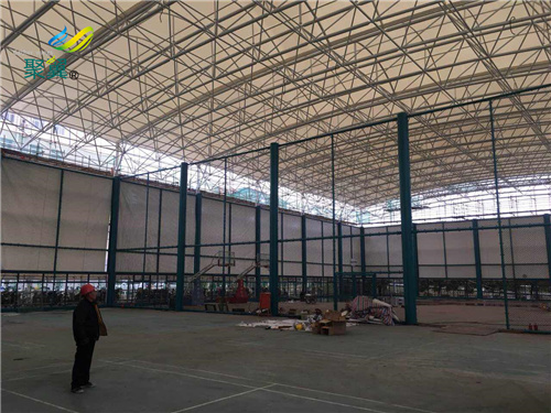 我們再來談一下柔性張拉膜結(jié)構(gòu)的安全性,按照現(xiàn)有的各國規(guī)范和指南設(shè)計的輕型張拉膜結(jié)構(gòu)具有足夠的安全性。輕型結(jié)構(gòu)在地震等水平荷載作用下能保持很好的穩(wěn)定性。由于輕型結(jié)構(gòu)自重較輕,即使發(fā)生意外坍塌,其危險性也較傳統(tǒng)建筑結(jié)構(gòu)小。膜結(jié)構(gòu)發(fā)生撕裂時,若結(jié)構(gòu)布置能保證桅桿、梁等剛性支承構(gòu)件不發(fā)生坍塌,其危險性會更小。 膜結(jié)構(gòu)的柔性使其在任一荷載作用下均以最有利的形態(tài)承載。當(dāng)然,結(jié)構(gòu)的布置和形狀要根據(jù)荷載情況來進行設(shè)計和調(diào)整。設(shè)計要確何膜面與其輔助結(jié)構(gòu)協(xié)調(diào)工作,以避免力在膜面或輔助結(jié)構(gòu)上集中而達結(jié)構(gòu)破壞的臨界值。