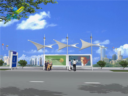 車棚是由上面造型奇特的膜材質(zhì)和下面骨架的鋼結(jié)構(gòu)、鋼索組成的,現(xiàn)場(chǎng)安裝即可完成。其實(shí)膜結(jié)構(gòu)是: