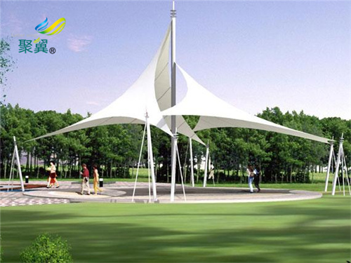 合適掩蓋大跨度空間,膜結(jié)構(gòu)中所運(yùn)用的膜資料每平方壹公斤左右,由于自重輕,加上鋼索、鋼結(jié)構(gòu)高強(qiáng)度資料的選用,與受力系統(tǒng)簡(jiǎn)練合理——力大部分以軸力傳遞,故使膜結(jié)構(gòu)合適跨越大空間而構(gòu)成開闊的無柱大跨度結(jié)構(gòu)系統(tǒng)。