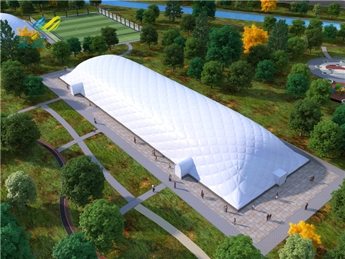充氣膜結(jié)構(gòu)體育館可隨時(shí)進(jìn)行搬遷,當(dāng)體育館不進(jìn)行賽事時(shí)可搬遷至學(xué)?;蛘咂渌枰\(yùn)用的場(chǎng)所,可以二次利用,無污染,可持續(xù)循環(huán)使用,根據(jù)需要可建成臨時(shí)或永久性建筑。