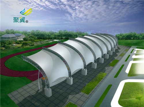 體育看臺(tái)造型美觀大方,空間跨度大,更好的體現(xiàn)了膜結(jié)構(gòu)建筑空間跨度的優(yōu)勢(shì),而且施工周期短。膜結(jié)構(gòu)正因?yàn)樽陨淼膬?yōu)點(diǎn),才使得它被廣泛的適用于大型體育場(chǎng)館、人口廊道、公園景觀小品、公眾休閑娛樂廣場(chǎng)、展覽會(huì)場(chǎng)、購(gòu)物中心、汽車停車場(chǎng)等領(lǐng)域。