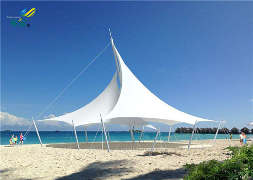 景觀膜結(jié)構(gòu)建筑的支撐一般為鋼結(jié)構(gòu),國內(nèi)對于鋼結(jié)構(gòu)的保護(hù)多采用涂防火涂料。國外類似建筑大多是不涂防火涂料的。還有一種更為穩(wěn)妥的辦法:***是在構(gòu)造上作處理,使膜面緊貼在鋼索下面,火災(zāi)中煙氣首先面對的是膜面,這樣鋼索下面又多了一個(gè)保護(hù)層,使鋼架不受任何高溫作用。