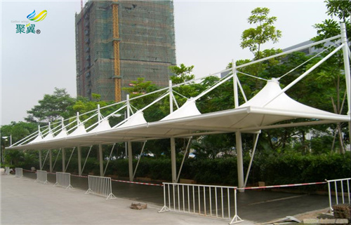 膜結(jié)構(gòu)車棚中的應(yīng)用也比較實用,質(zhì)量比較好,當然造價也是相對性高。