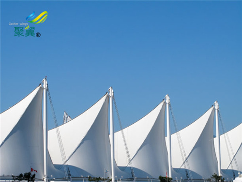 2、膜結(jié)構(gòu)的膜材制作是在專用膜材料加工廠熱合加工而成,通過(guò)現(xiàn)場(chǎng)組裝預(yù)制構(gòu)件(膜片、索等)而實(shí)現(xiàn)的。